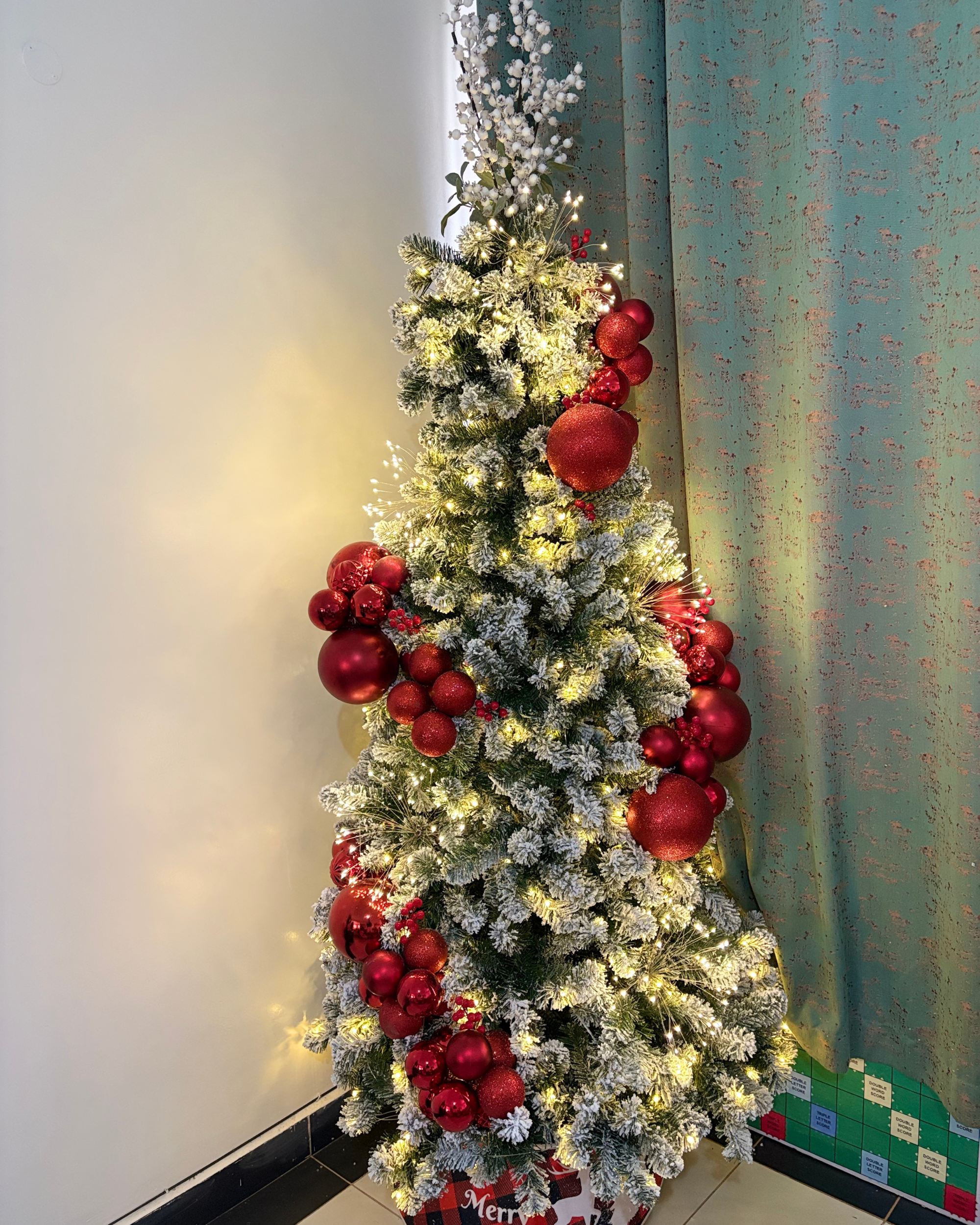 8 ft Snow-Flocked Red Luxe Christmas Tree